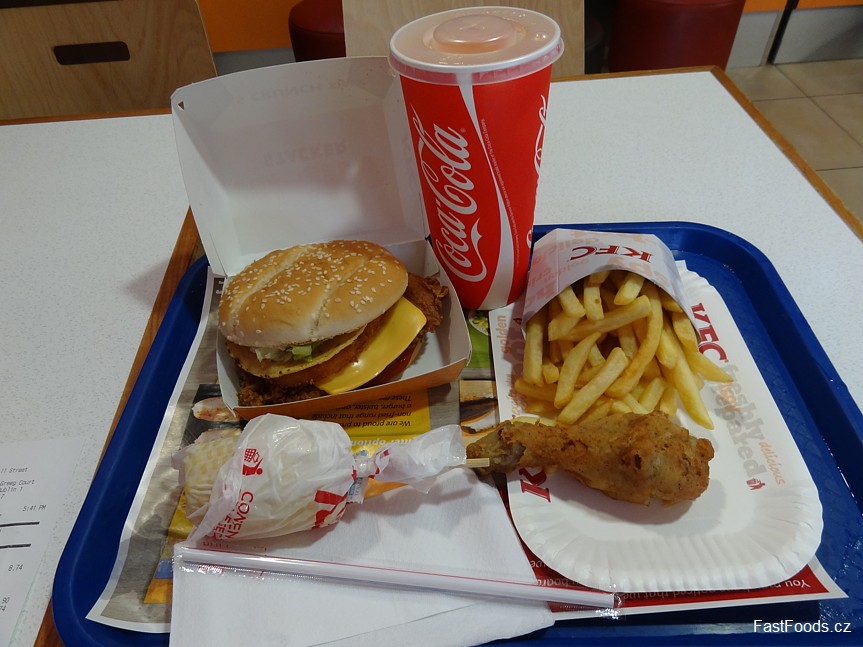 Objednal jsem si Nacho Stacker box meal s fantou, hranolky, kukuřicí a kuřetem, který už jsem jednou měl a vsadil jsem na osvědčenou variantu. Hranolky byly tentokrát bez chuti a sůl jsem nedostal. Kus kuřete byl super a křupavý. Burger byl nějaký ostřejší než jsem čekal, maso bylo přes celou plochu burgeru, bramborová placka, čerstvý salát a nachos chipsy dodaly burgeru křupavou chuť. Jedná se o dost tučný burger díky bramborové placce.