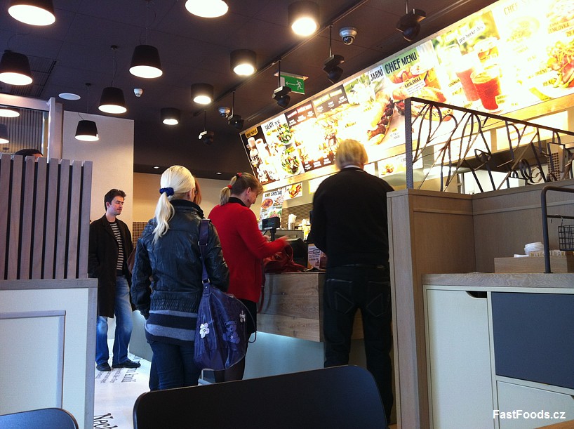 Interiér je poněkud zajímavější, ale bohužel dosti stísněný. Pokladny se nacházejí necelé dva metry naproti od vchodu a při větších frontách člověk ani neprojde. Po levé straně naleznete dva osamocené stolečky v rohu. Pokud se vydáte do prava, můžete se usadit na pohodlné semišové sofě, případně na několika dřevěných židlích v další části restaurace. Poněkud zajímavý je zadní vchod s turniketem, který vede přimo do administrativní budovy. Interiér je v Boulevard stylu - dřevěné obložení pultíků, košů, stěn a dřevené stoly. Na stěnách uvidíte několik obrazů a velkou tapetu Boulevard.